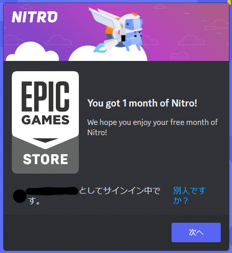 Epic Games StoreでDiscord Nitroが1ヶ月無料でもらえるらしいので、