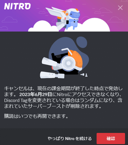 「Nitro サブスクリプション登録をキャンセルしました」というメールも届くと思います!
