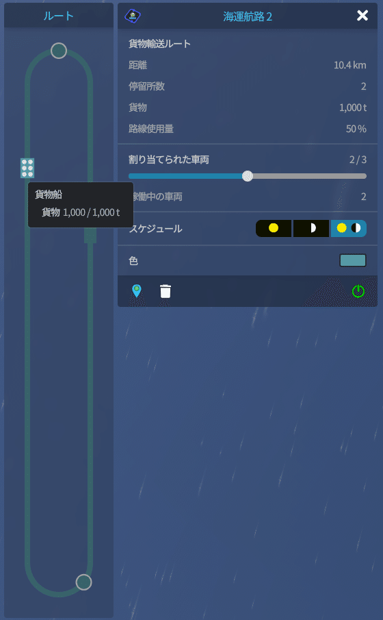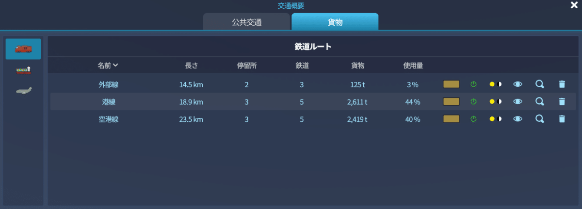 船と飛行機に関してはルートを設定するだけですが、鉄道に関しては車両基地を置かないと電車が走りません。