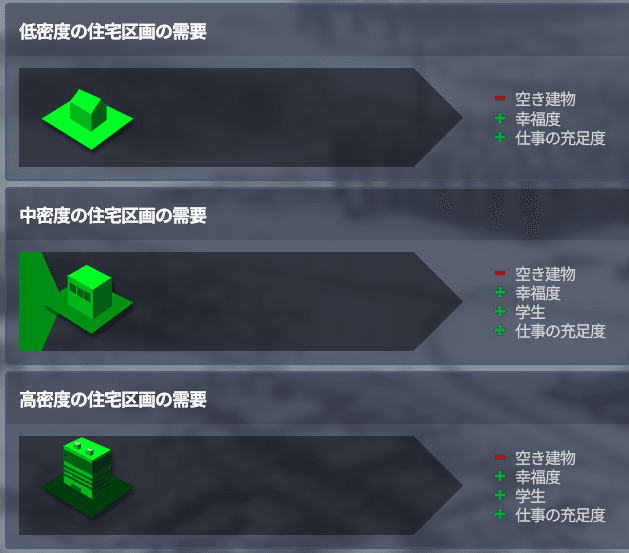 今作は住宅需要が3つに分かれています。