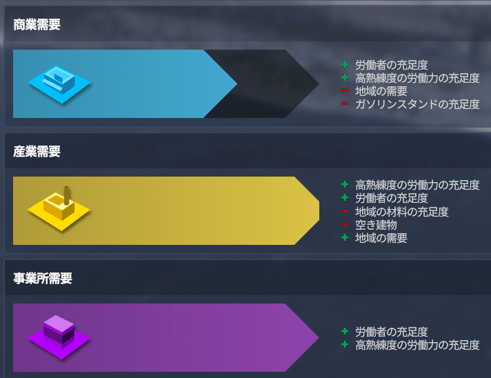 他の地区画の需要は前作と同じ感じですね。