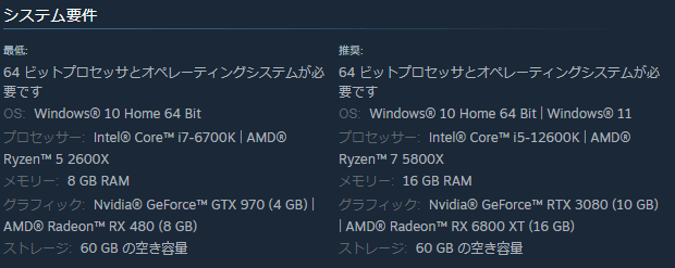 Steamに記載がある推奨スペックが高すぎて話題になりましたね。