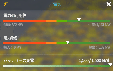 上の画像が自分の街の情報です。139MWを売って34万稼げます。(このゲームの通貨わからない)