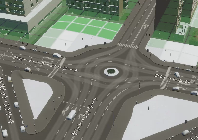 円が小さいと渋滞しやすいので、適切なサイズのラウンドアバウトをつける必要がありますね。